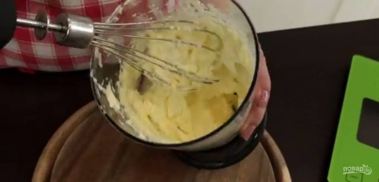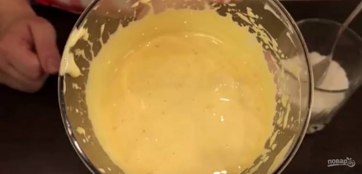 5. Приготовьте бисквит: отделите желтки от белков комнатной температуры и взбейте до светлой пены. Добавьте сахар и снова взбейте до растворения сахара. Взбейте белки блендером до пышной пены.