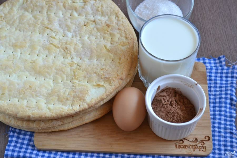 Подготовьте все необходимые ингредиенты. В этот раз я использовала коржи для "Наполеона".