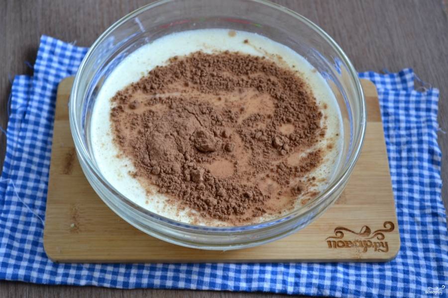 Всыпьте какао, хорошо размешайте, перелейте массу в кастрюльку, поставьте на огонь и медленно доведите до кипения. Не забывайте постоянно помешивать, чтобы снизу крем не подгорел.