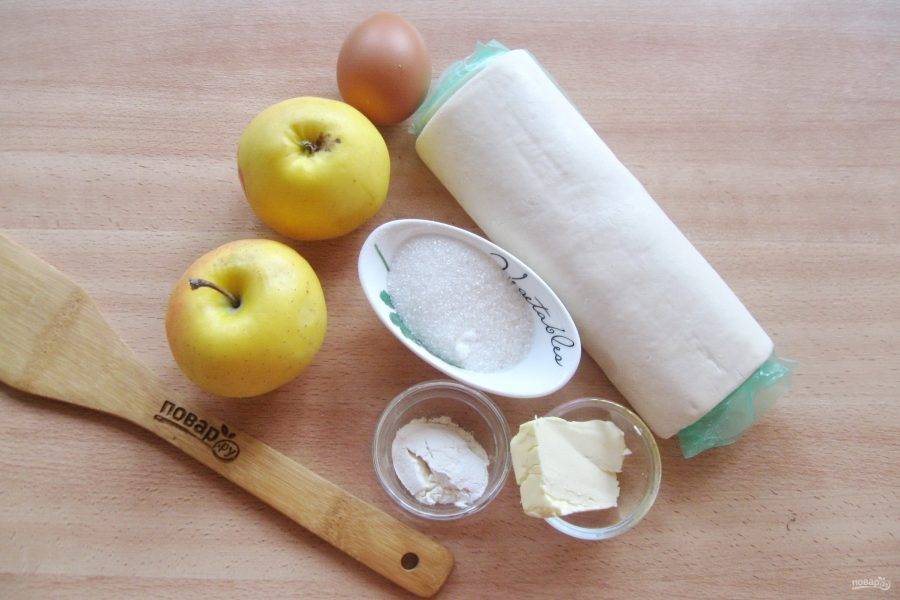 Подготовьте ингредиенты для приготовления шоссонов с яблоками.
