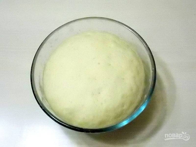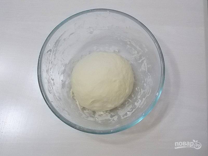 Замесите мягкое тесто. Сформируйте шар и поставьте в теплое место на 1.5 часа для подъема.