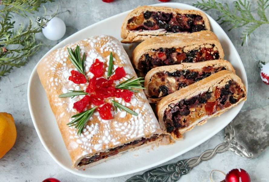 Очень ароматная выпечка, в которой огромное количество сухофруктов и орехов, невероятно мягкая и совсем не приторная. Делать кекс можно за несколько недель до праздника, главное не съесть раньше!