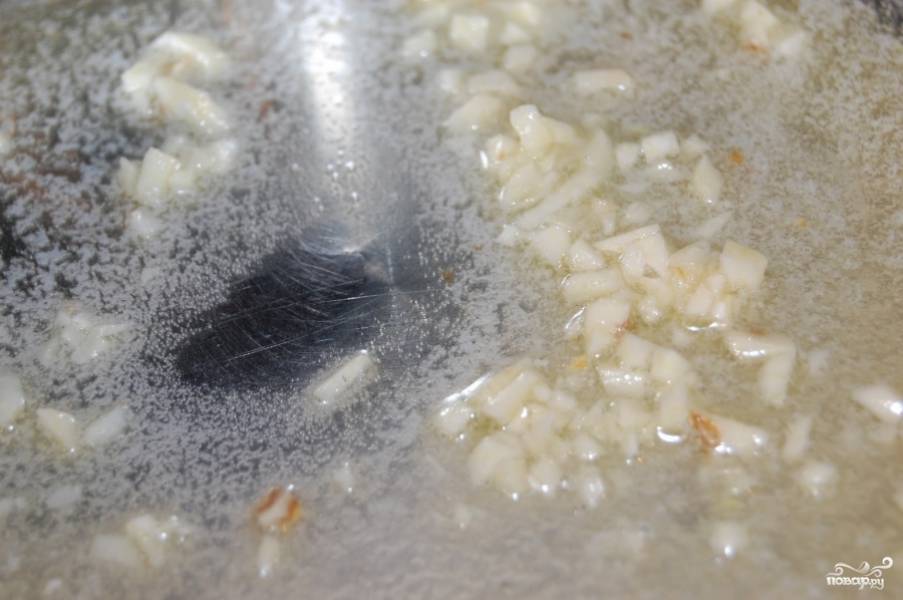 Мелко нарубите чеснок и обжарьте на растительном масле.