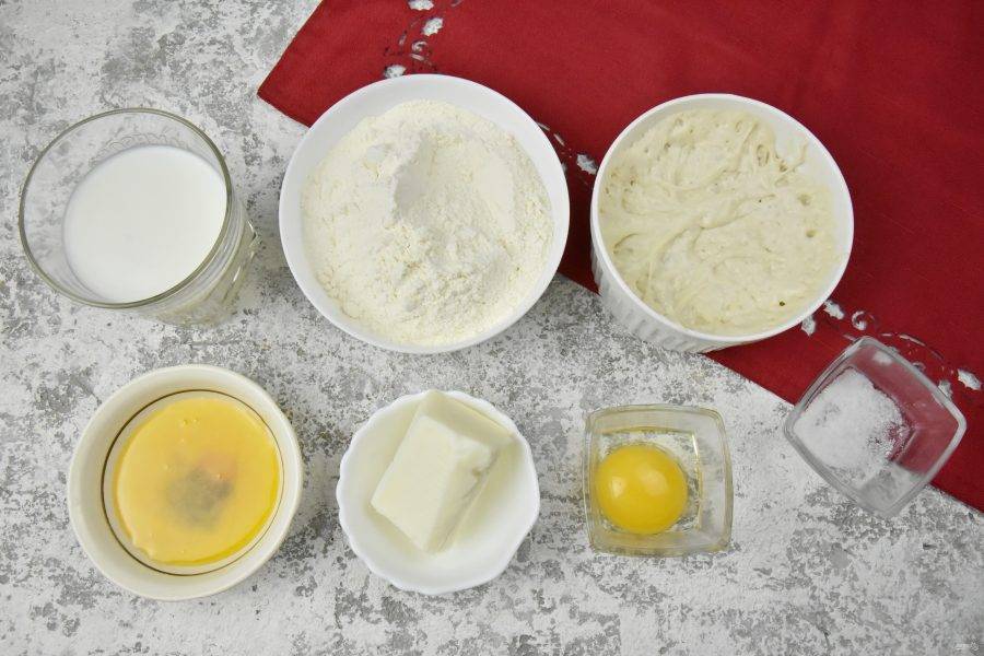 - Мука пшеничная 260 грамм 85 грамм — для опары + 175 грамм — в тесто