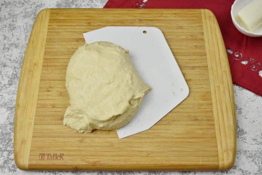 В хорошо вымешанное тесто в несколько заходов вмешайте мягкое сливочное масло.