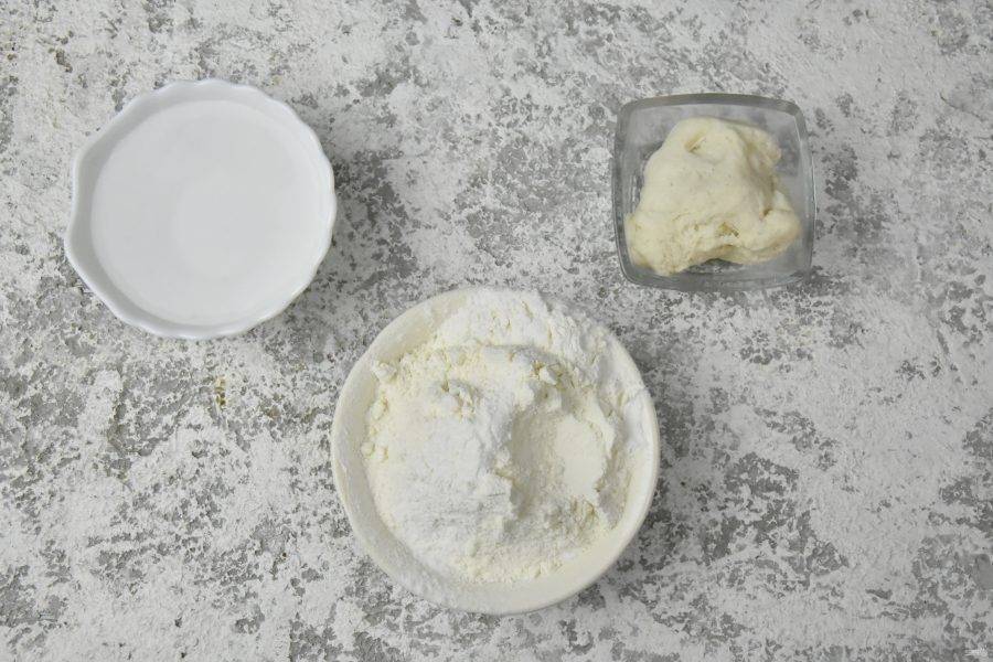Подошедшее тесто разделите на две части и сформируйте овальные лепешки на подпыленной мукой пергаментной бумаге. Сделайте разметку на тесте, разделив мысленно лепешку на 3 части. Заверните свободный край теста, накрыв 2/3 поверхности теста и оставив 1/3 часть свободной.