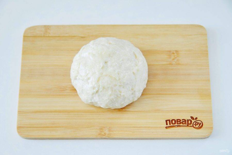 Замесите мягкое и эластичное тесто. Соберите его в шар, смажьте растительным маслом, заверните в пищевую пленку и оставьте на 20-30 минут.