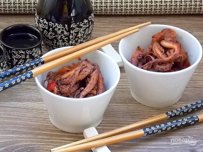Очень интересный способ приготовления, да и чистить щупальца очень тщательно при таком способе не нужно. Попробуйте этот оригинальный деликатес.