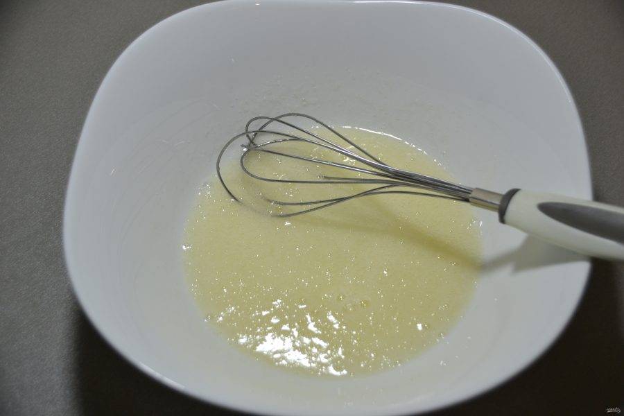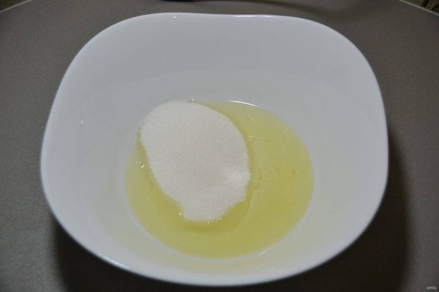 Аккуратно отделите белки от желтков, в рецепте используются только белки, добавьте сахарный песок.