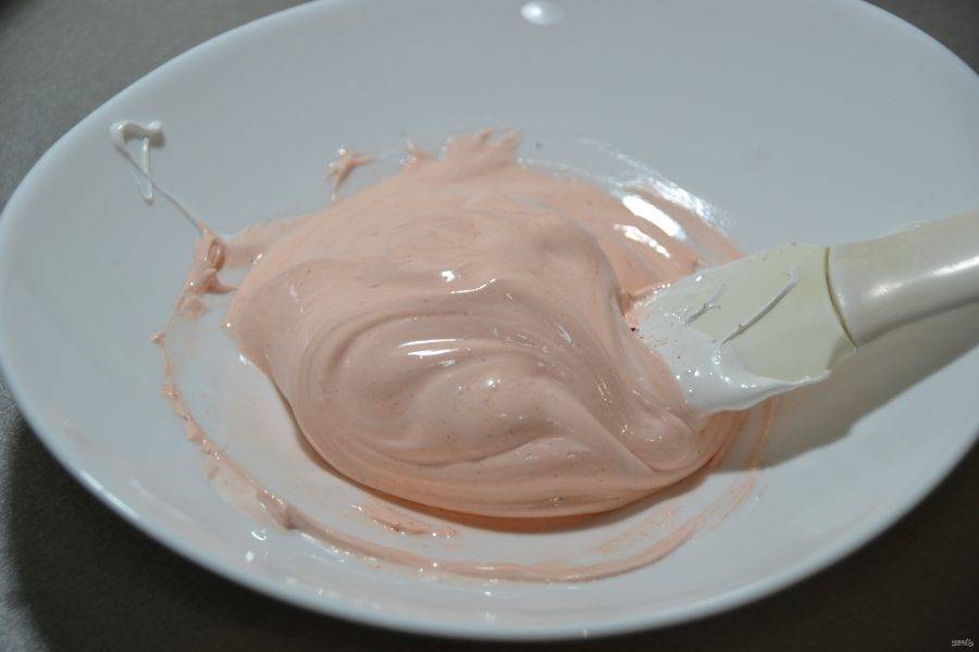 В одну часть добавьте сухой или гелевый пищевой краситель.