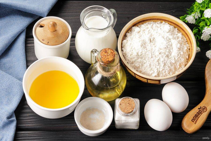 Подготовьте все ингредиенты по списку. В тесто можно добавить сухих дрожжей на кончике ножа, чтобы баурсаки были мягкими, можно и без дрожжей приготовить. Сливочное масло растопите и дайте немного остыть.