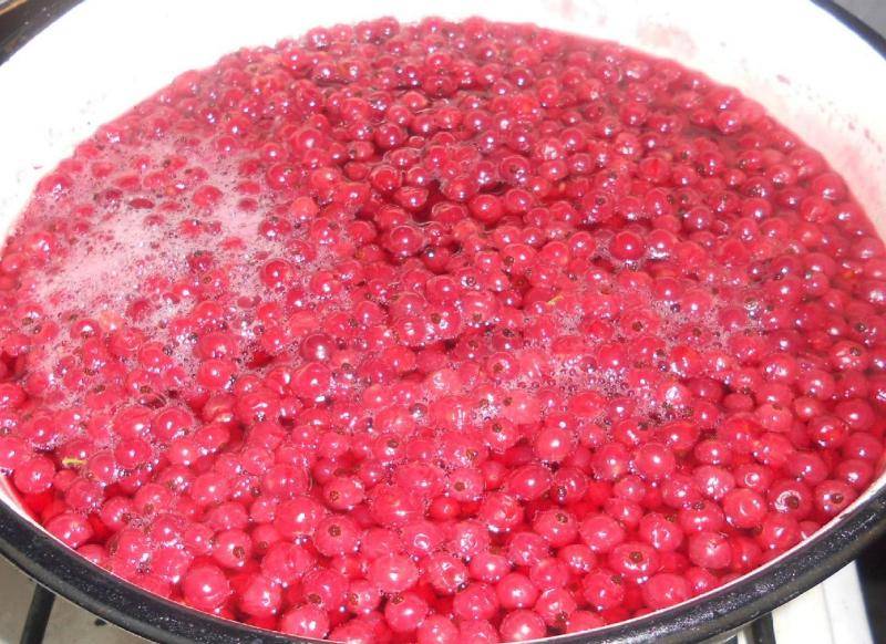 Когда жидкость закипит, смородину следует варить в течение 5 минут не больше, не забывая помешивать ягоды.