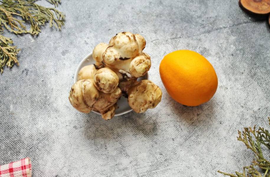Подготовьте все необходимые ингредиенты для приготовления сиропа из топинамбура. Клубни очистите от земли, тщательно вымойте в горячей воде с жесткой щеткой или просто почистите. Сполосните клубни и дайте просохнуть. Лимон тщательно вымойте с мягкой щеткой в теплой воде и вытрите.