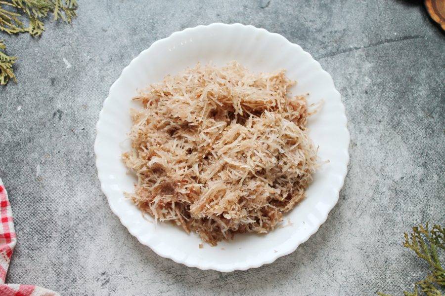 Натрите топинамбур на мелкой терке и отожмите сок через марлю, сложенную в три раза. Или отожмите сок при помощи соковыжималки.