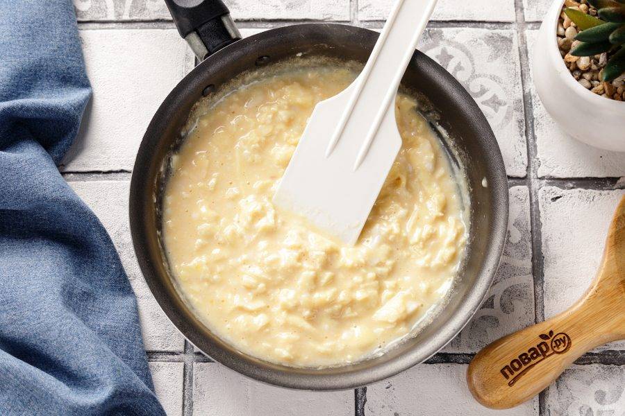 Продолжайте готовить смесь, на небольшом огне, помешивая примерно раз в пять секунд.