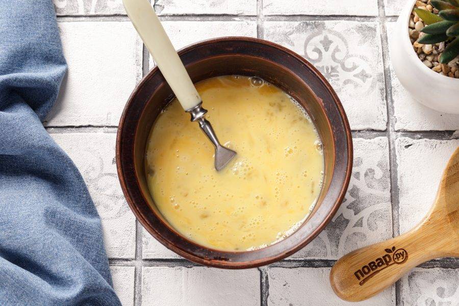 Перемешайте вилкой. До очень пышной пены взбивать не надо.