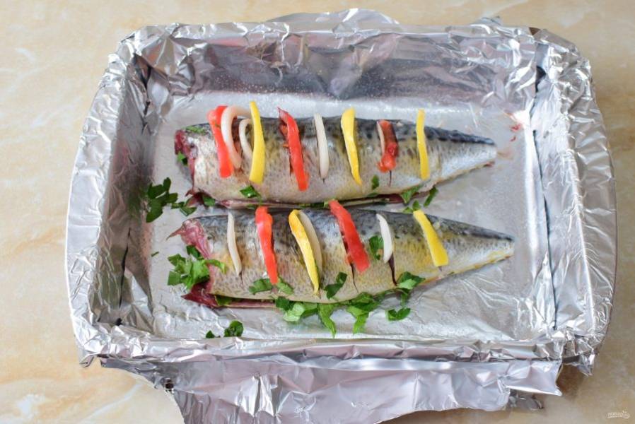 Заверните рыбу в фольгу и поставьте в духовку, предварительно разогретую до 180 градусов, примерно на 40 минут.