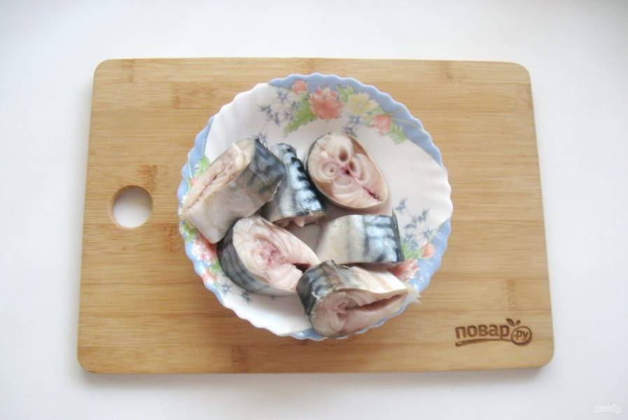 Рыбу выпотрошите, удалите голову и плавники. Помойте снаружи и внутри. Нарежьте кусочками.