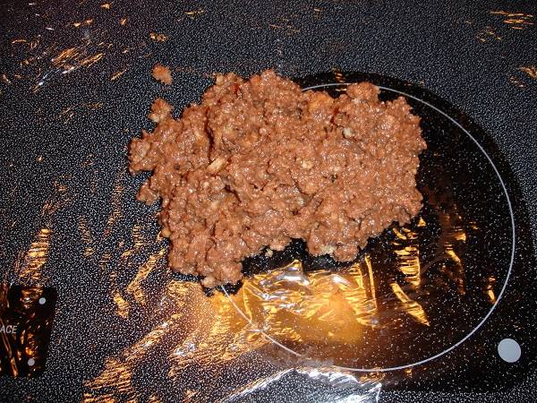 4. Вот практически весь рецепт. Осталось разделить массу на 2-3 части и выложить на лист пищевой пленки или пергамента для выпечки.
