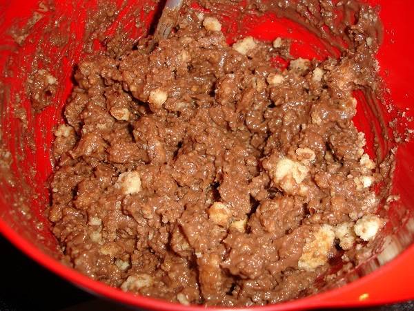 3. Затем можно добавить печенье и начать вымешивать, пока не получится однородная масса. При желании можно добавить немного орехов или маршмеллоу, например.
