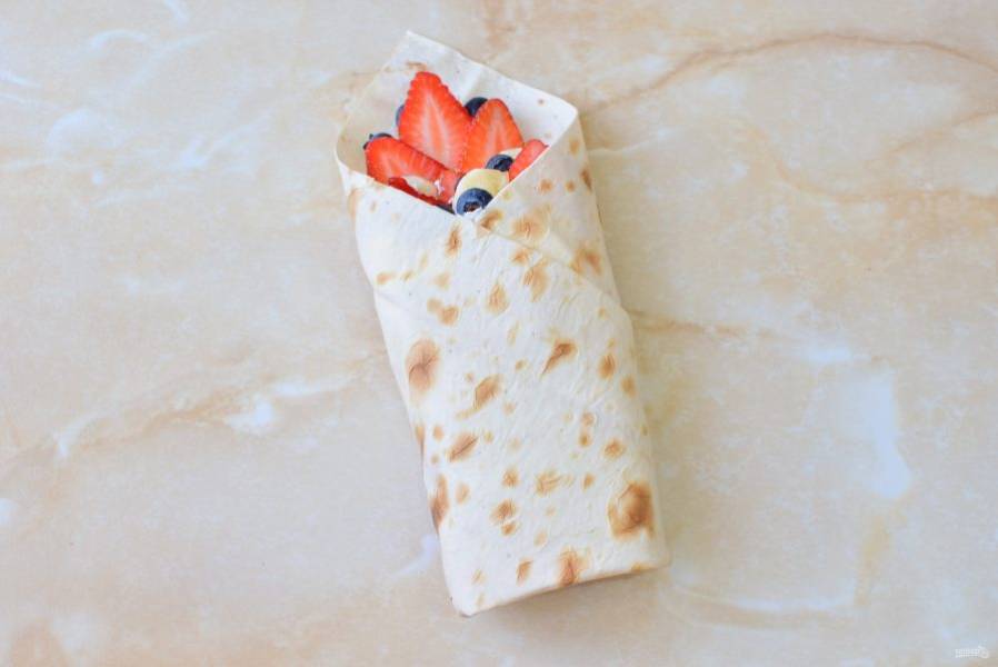 Сверните все в шаурму. Можно сделать конвертиком или, как привычнее, свернуть в рулет.