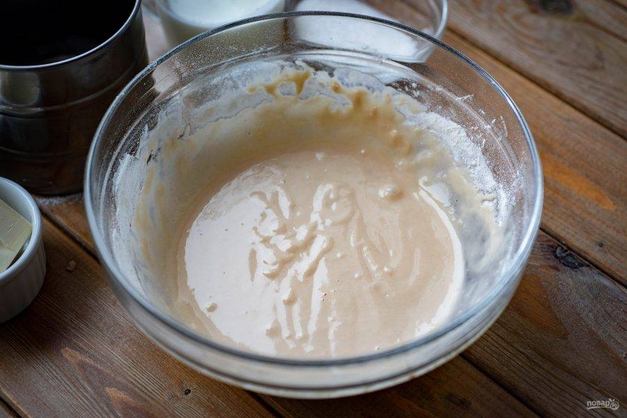 И перемешайте венчиком до получения однородной смеси — это опара. Миску с опарой накройте кухонным полотенцем и оставьте в покое на 30 минут.