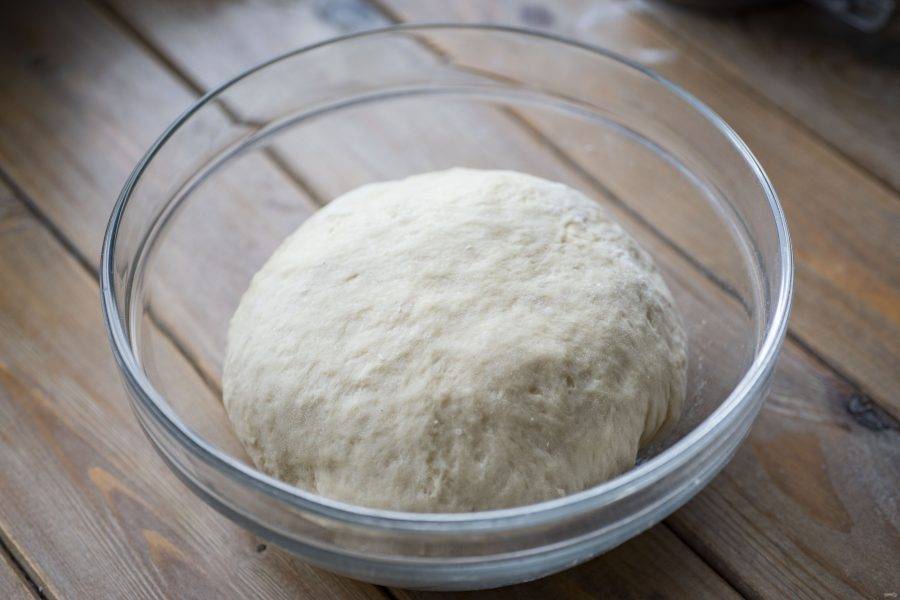 В итоге у вас должно получиться мягкое тесто, не сбитое и при этом не прилипающее к рукам. Округлите тесто в миске, накройте миску с тестом кухонным полотенцем и поставьте в теплое место примерно на полтора часа подходить. За это время можно сделать одну обминку теста руками.