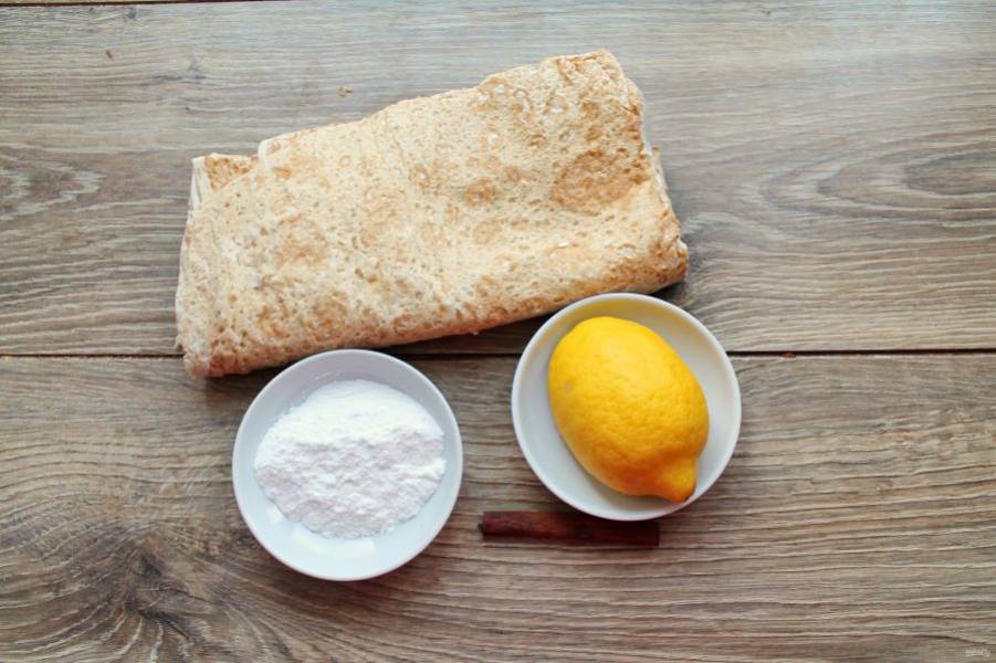 Подготовьте все необходимые ингредиенты для приготовления сладких чипсов из лаваша.