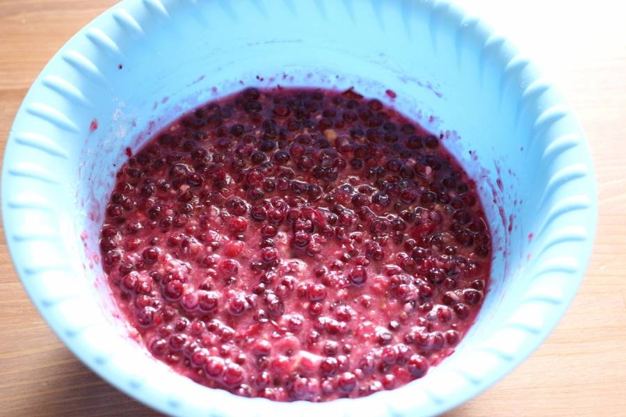 3. С мочёной брусники слить сок. Клюкву перебрать и промыть.