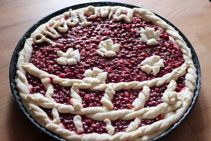 7. Выложить на тесто начинку и украсить пирог.