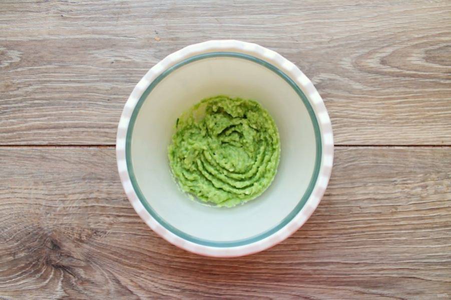 Авокадо вымойте и разрежьте пополам. Удалите косточку и достаньте мякоть в миску. Превратите мякоть в пюре при помощи вилки или блендера.