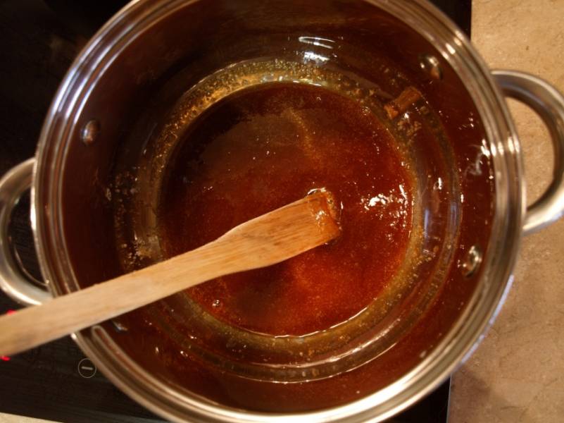 Сахар растопить на медленном огне.