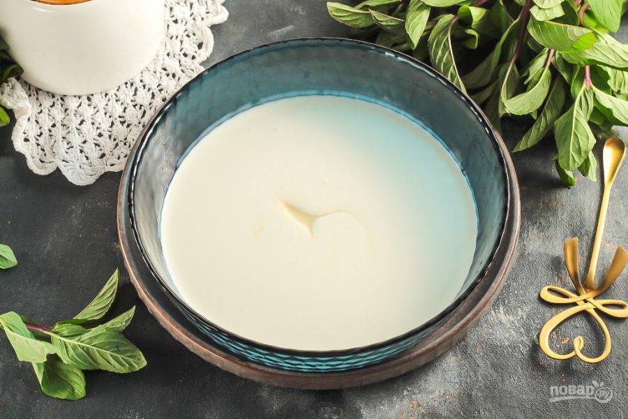В глубокой емкости соедините кокосовое молоко, сгущенное молоко и жирные сливки. Если любите десерты менее жирные, то приобретайте сливки с жирностью 10% или 15%. Можно взбить сливки в чаше кухонного комбайна 3-4 минуты, но не дольше, чтобы не перевзбить их в масло.