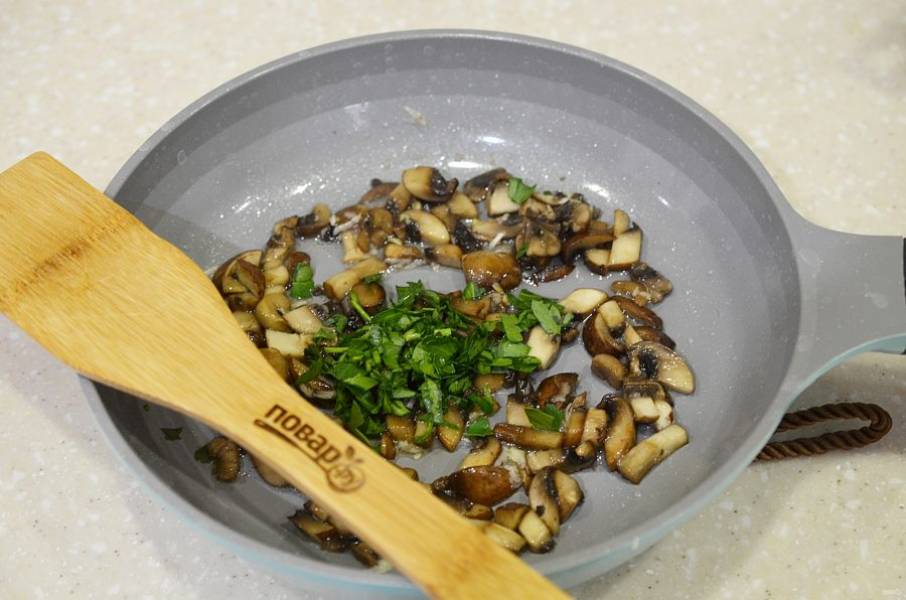 4. Добавьте зелень и обжарьте.