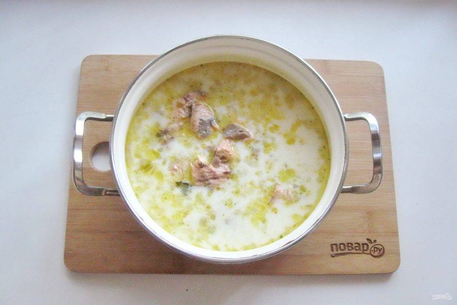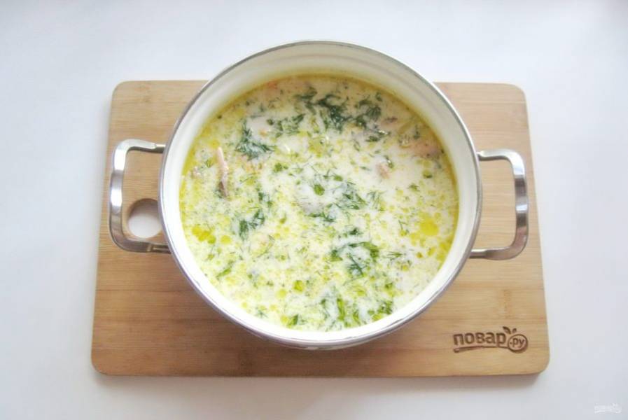 Сливочный суп с горбушей готов. Подавайте на обед.
