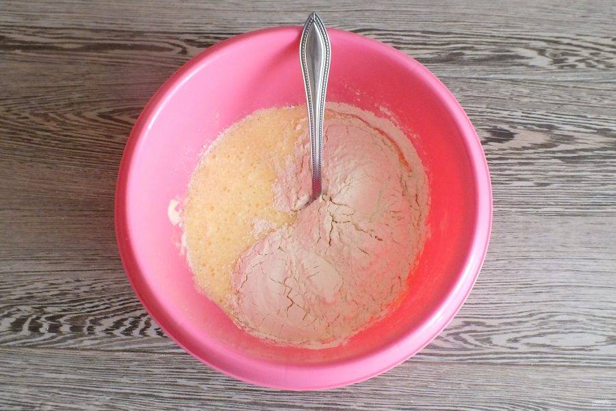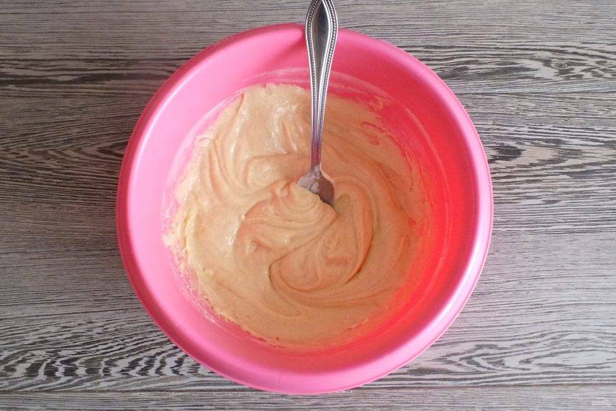 Перемешайте вилкой до однородного состояния. Тесто должно получиться густым и вязким.