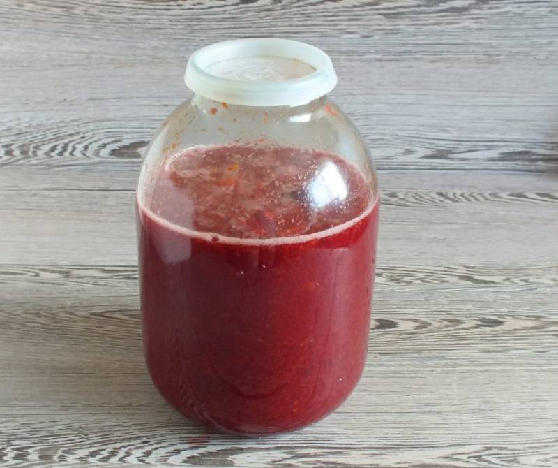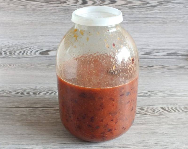 Перемешайте. Закройте плотной, полиэтиленовой крышкой. Уберите в темное, прохладное (18-20 градусов) место на 35-40 дней.