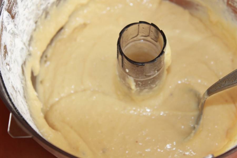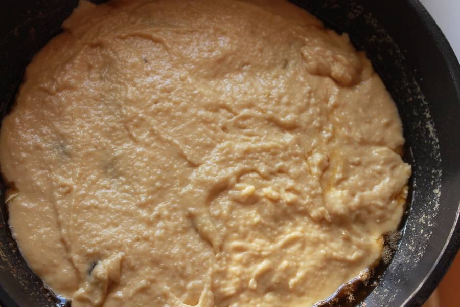 На чернослив выкладываем тесто и отправляем в духовку на 160 градусов на 40 минут.