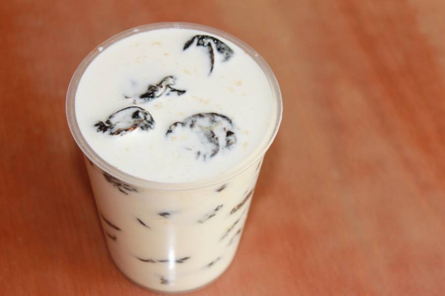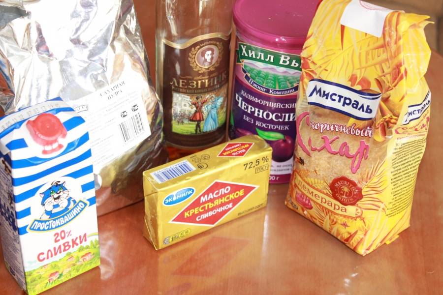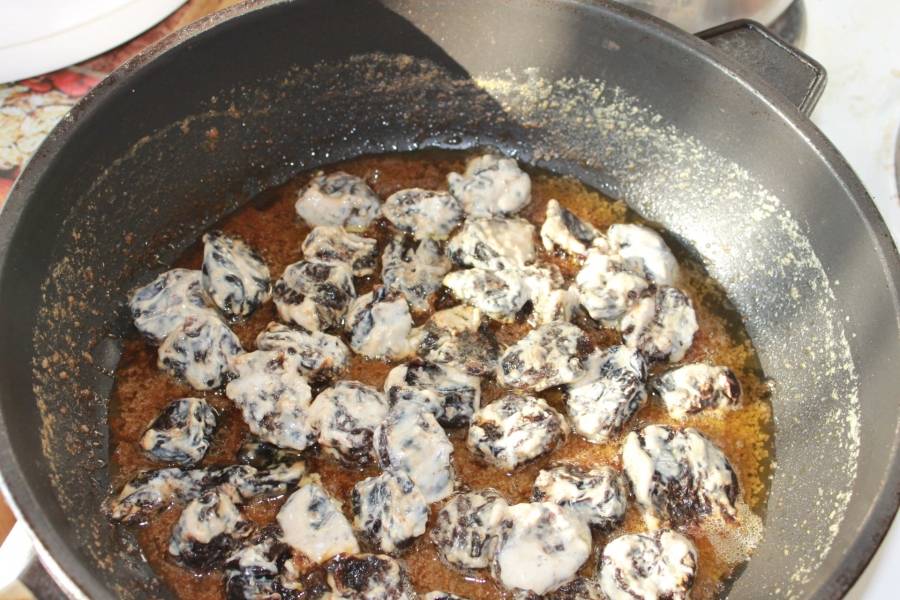 Смешиваем 1.5 ст. л. сахарной пудры с коньяком и сливками, заливаем чернослив и убираем настаиваться на 1.5 часа.