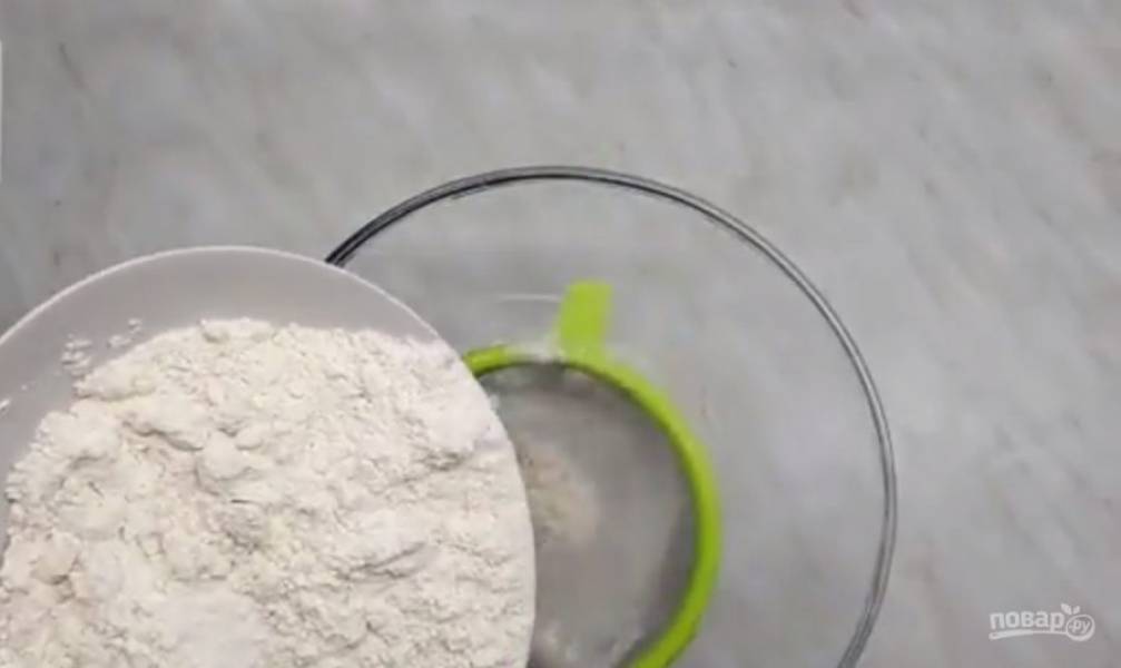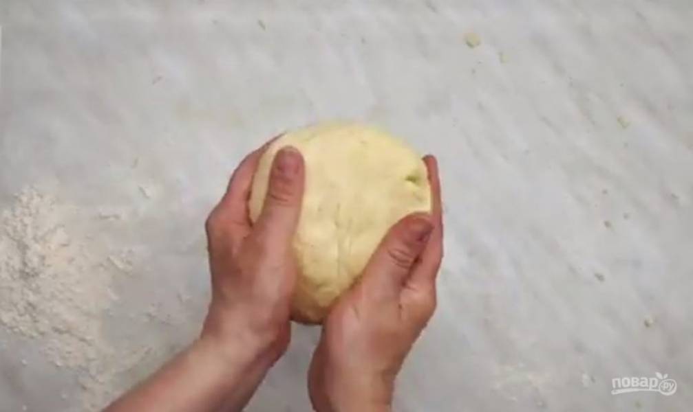 1. Просеянную муку смешайте с сахаром и солью, нарезанным ледяным маслом и перебейте с помощью блендера до состояния крошки. Добавьте в воду уксус, перемешайте и добавьте к муке.