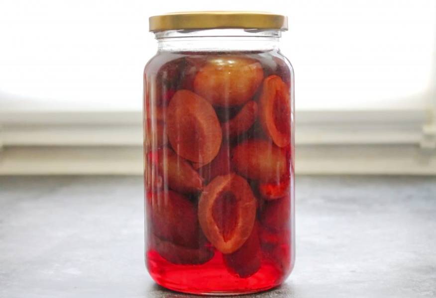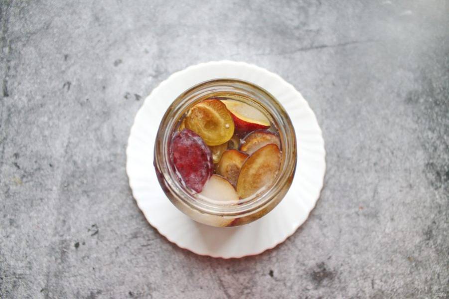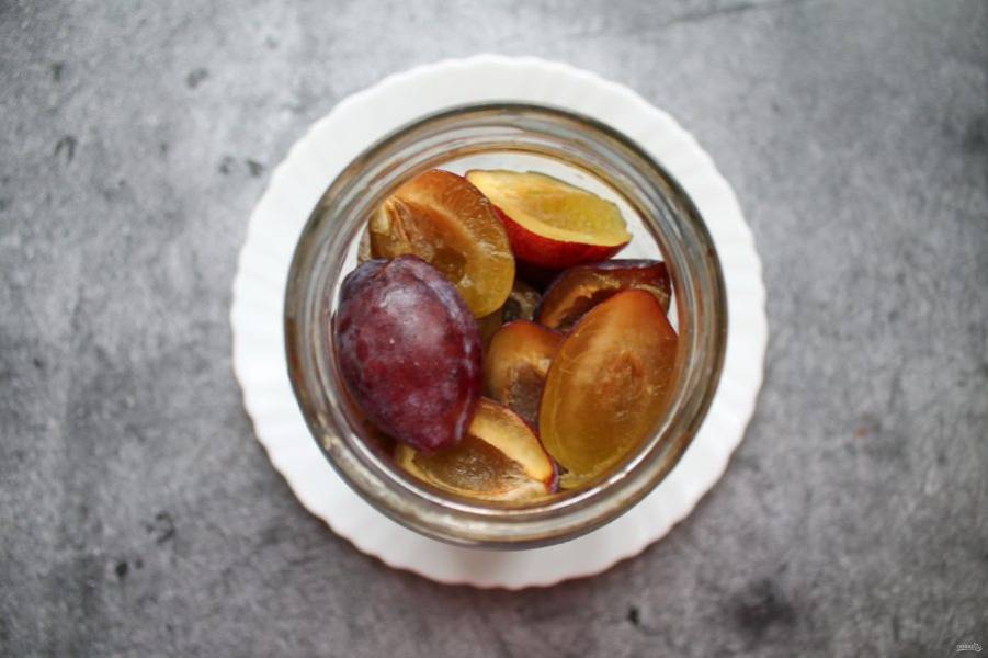У слив удалите косточки, разделите на половинки и выложите в чистую, сухую банку.