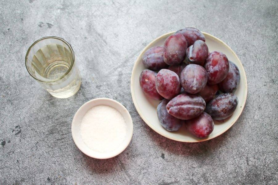 Подготовьте все необходимые ингредиенты для приготовления сливянки. Сливу переберите, вымойте и обсушите.