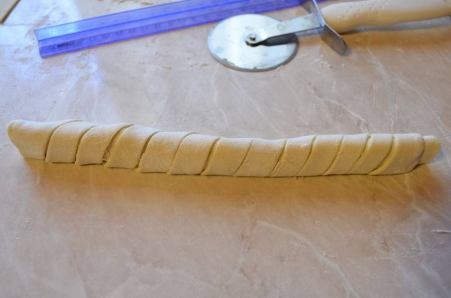 сделать надрезы при помощи круглого ножа и линейки, как указано на фото