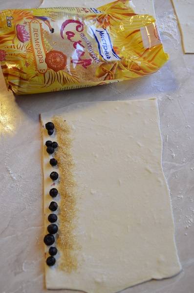 Быстрый и простой десерт – слойки с черникой. Если вдруг случайно пришли гости или очень хочется сладенького, а сил и времени в обрез, этот рецепт как раз для вас! Нужна пачка слоеного теста и ягоды.