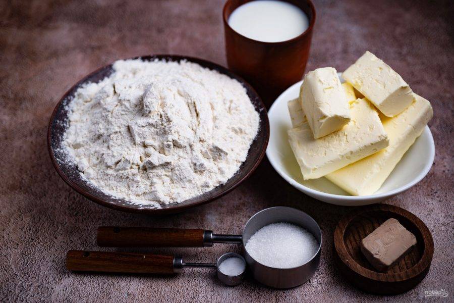 Соберите все ингредиенты для приготовления домашнего слоеного дрожжевого теста.