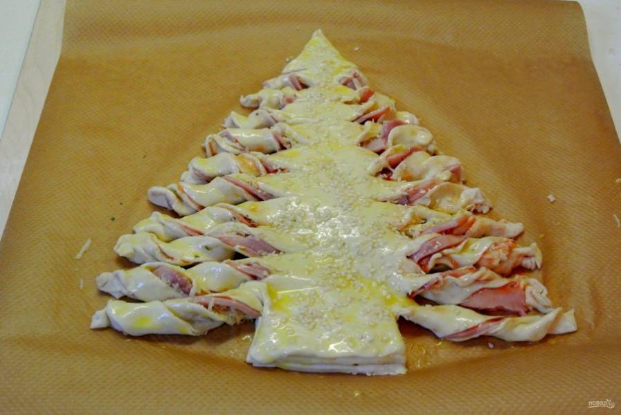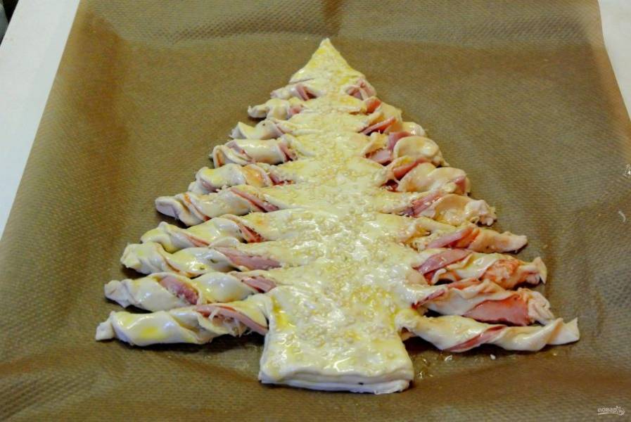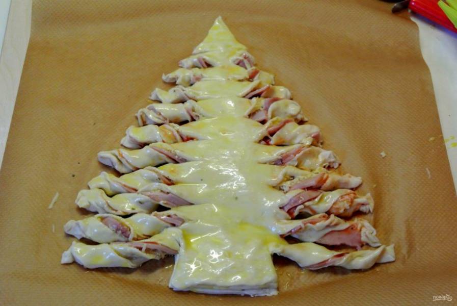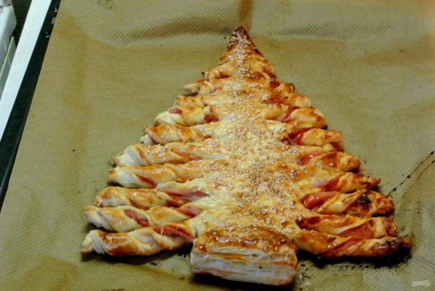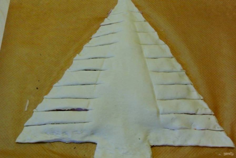 Переложить, вернее, "перетащить" сформированную "Елочку" вместе с листом для выпечки на противень.