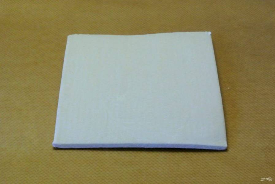 В одной упаковке - 2 квадрата теста. Каждый квадрат теста разморозить.