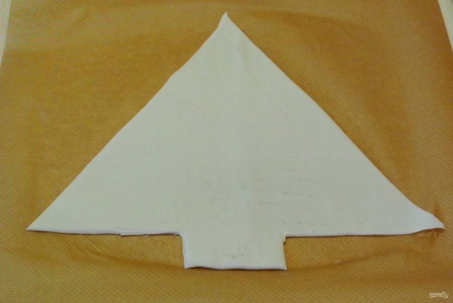 Ножом для пиццы (так удобнее разрезать) вырезать треугольник.
