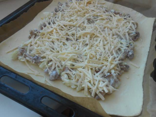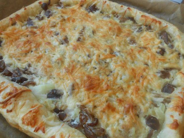 Пирог с грибами из слоеного бездрожжевого теста