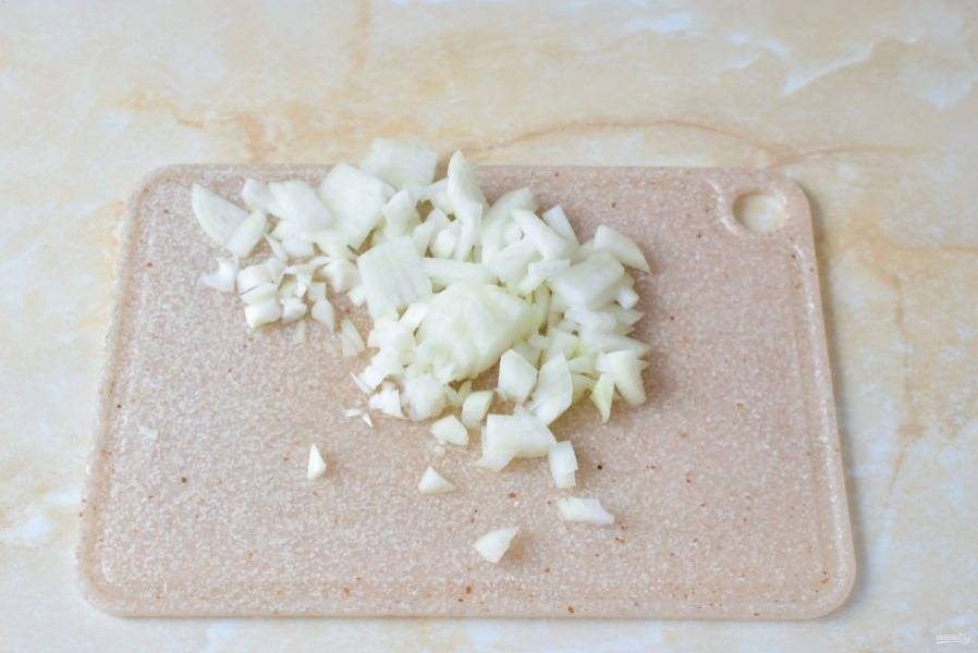 Лук очистите, ополосните в холодной воде и мелко нарежьте.